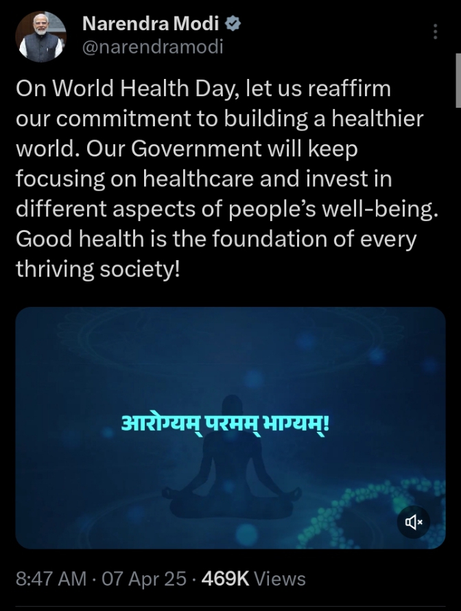 “On World Health Day, let us reaffirm our commitment to building a healthier world. Our Government will keep focusing on healthcare and invest in different aspects of people’s well-being. Good health is the foundation of every thriving society!”